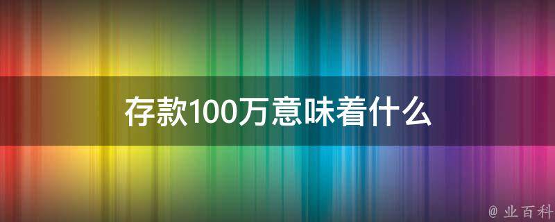 存款100万意味着存款的人具备了一定的经济储备,在面对突发事件或者计划未来生活时能够更加从容地应对。从一般人的角度来看,100万的存款是一笔相对较大的资金。对于一般的家庭而言,这个数字足以满足生活中的各种基本需求,比如购房、购车、子女教育等。