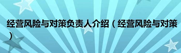 大家好,小华来为大家解答以上的问题。经营风险与对策负责人介绍,经营风险与对策这个很多人还不知道,现在让我们一起来看看吧!