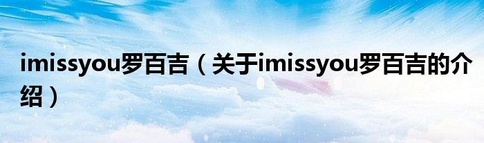 大家好,小夏来为大家解答以上的问题。imissyou罗百吉,关于imissyou罗百吉的介绍很多人还不知道,现在让我们一起来看看吧!