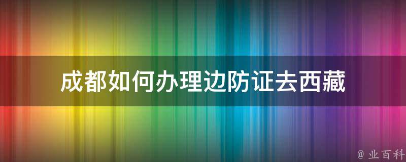 成都办理边防证去西藏的方法:准备本人有效身份证件到辖区派出所开具证明,准备身份证件和派出所开具的证明到边防大队办理边防证,一般3~4个工作日可拿到。若前往珠峰大本营、阿里地区等边防地区,需要携带户口本或户籍证明等证明个人身份和信息的文件。