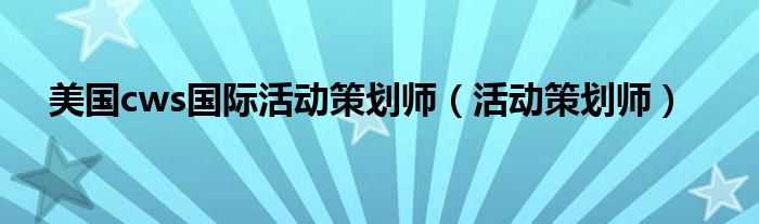 大家好,我是小科,我来为大家解答以上问题。美国cws国际活动策划师,活动策划师很多人还不知道,现在让我们一起来看看吧!