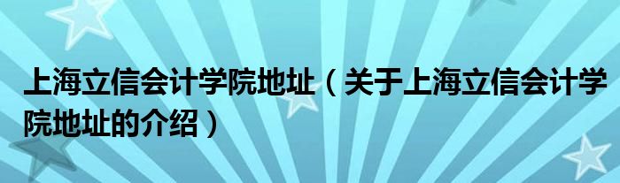 大家好,小夏来为大家解答以上的问题。上海立信会计学院地址,关于上海立信会计学院地址的介绍很多人还不知道,现在让我们一起来看看吧!