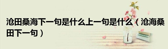 大家好,小联来为大家解答以上的问题。沧田桑海下一句是什么上一句是什么,沧海桑田下一句这个很多人还不知道,现在让我们一起来看看吧!