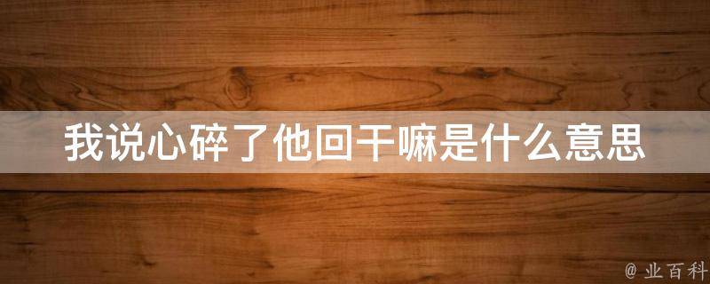 我说心碎了他回干嘛,意思是发生了什么事情,你怎么了,这时可以直接阐述心碎的原因,征询对方的意见。男生回复干嘛的意思是询问对方正在做什么事情,或者简单地问对方有什么事情需要帮助。这只是一个简单的问候,没有其他特别的含义。