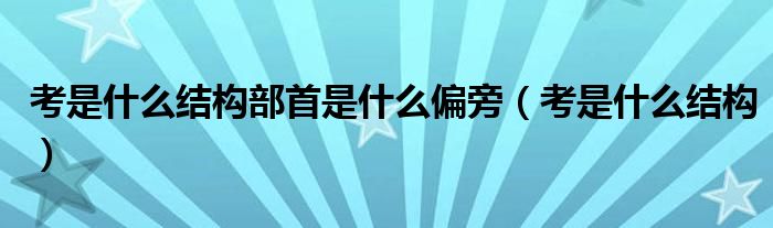 大家好,我是小科,我来为大家解答以上问题。考是什么结构部首是什么偏旁,考是什么结构很多人还不知道,现在让我们一起来看看吧!