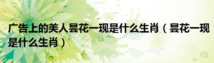 大家好,我是小科,我来为大家解答以上问题。广告上的美人昙花一现是什么生肖,昙花一现是什么生肖很多人还不知道,现在让我们一起来看看吧!