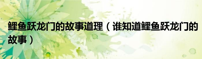 大家好,小联来为大家解答以上的问题。鲤鱼跃龙门的故事道理,谁知道鲤鱼跃龙门的故事这个很多人还不知道,现在让我们一起来看看吧!