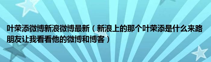 大家好,小联来为大家解答以上的问题。叶荣添微博新浪微博最新,新浪上的那个叶荣添是什么来路 朋友让我看看他的微博和博客这个很多人还不知道,现在让我们一起来看看吧!