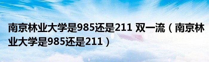 1、南京林业大学不是211大学,也不是985大学。