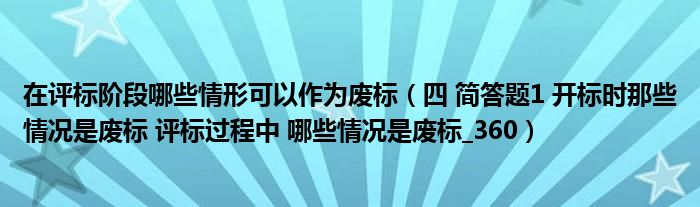 大家好,小联来为大家解答以上的问题。在评标阶段哪些情形可以作为废标,四 简答题1 开标时那些情况是废标 评标过程中 哪些情况是废标_360这个很多人还不知道,现在让我们一起来看看吧!