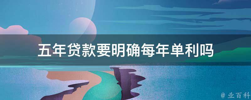 五年贷款要明确每年单利。各种贷款产品,包括消费贷、房贷等,很多年化利率后面都明确标注了单利。央行的公告称:贷款年化利率可采用复利或单利方法计算。复利计算方法即内部收益率法,具体示例见附件。采用单利计算方法的,应说明是单利。