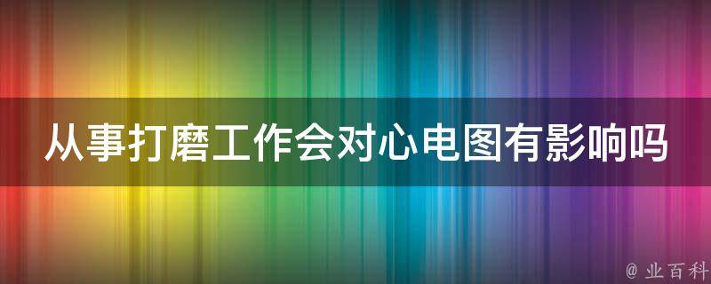 从事打磨工作会对心电图有影响。打磨工作通常需要长时间保持固定姿势,这可能会导致身体疲劳和肌肉紧张,从而对心电图产生一定的影响。此外,打磨过程中产生的灰尘和颗粒物也可能会对呼吸系统和心血管系统产生一定的刺激和影响。