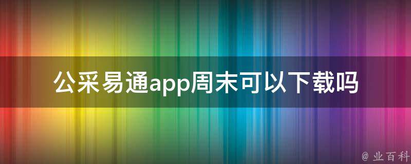 公采易通app周末可以下载,不限时间。公采易通是博思数采公采云推出的商家服务平台,基于博思数采、阳光公采等建设和服务的100多个政企采购网上商城项目,为供应商提供便捷统一参与商城直购、竞价和定点采购、招投标采购活动的综合服务平台。