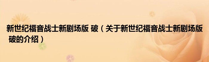 大家好,小夏来为大家解答以上的问题。新世纪福音战士新剧场版 破,关于新世纪福音战士新剧场版 破的介绍很多人还不知道,现在让我们一起来看看吧!
