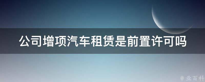 公司增项汽车租赁不是前置许可。在工商管理局的角度来说,汽车租赁这部分是无须前置许可的,所以可以直接开展这部分的业务。但经营范围中涉及依法须经批准的项目,经相关部门批准后方可开展经营活动。