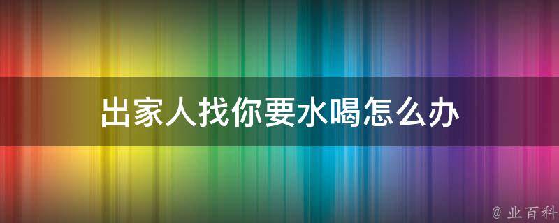 出家人找你要水喝可以倒一杯水给他,如果不方便倒水给他也可以跟他说出在哪里可以找到水喝。出家是指离开亲人、家庭、事业这样的世俗世界,到寺庙里做僧尼或到道观里做道士。一般出家人每天得吃斋诵经、勤修戒定慧,以解脱为目标进行修行。