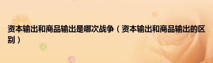 大家好,小夏来为大家讲解下。资本输出和商品输出是哪次战争,资本输出和商品输出的区别很多人还不知道,现在让我们一起来看看吧!