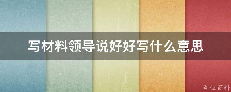 写材料领导说好好写,通常意味着他们希望你认真对待写作任务,并尽力以最佳的质量完成它。这可能意味着要花更多时间思考、研究和编辑,以确保你的写作清晰、准确、有力,并且能够有效地传达你想要表达的信息。
