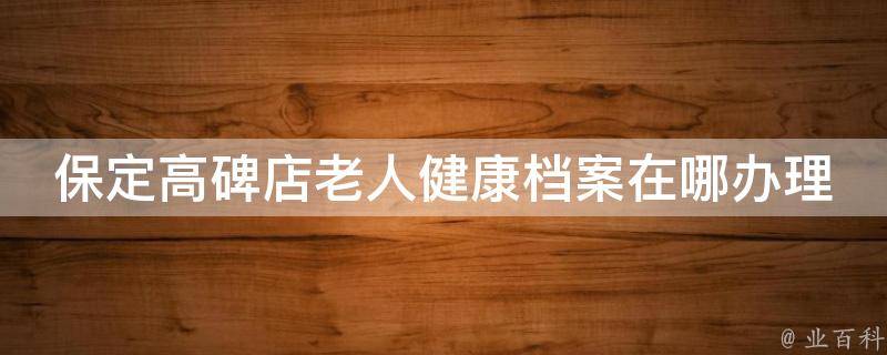 1、在当地社区或居委会进行办理:高碑店市各街道、乡镇都有社区或居委会,这些机构通常会为居民提供健康档案的建立和管理服务。可以前往所在社区或居委会咨询相关办理流程和所需材料。