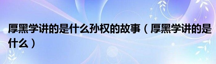 大家好,我是小科,我来为大家解答以上问题。厚黑学讲的是什么孙权的故事,厚黑学讲的是什么很多人还不知道,现在让我们一起来看看吧!