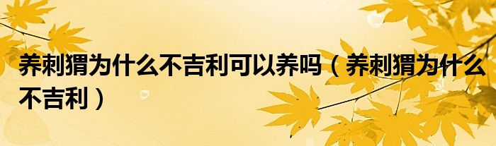 大家好,我是小科,我来为大家解答以上问题。养刺猬为什么不吉利可以养吗,养刺猬为什么不吉利很多人还不知道,现在让我们一起来看看吧!