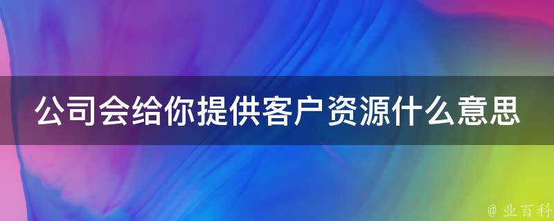 公司会给你提供客户资源的意思是公司会给员工提供具体的客户。客户资源是指企业集群可以更好锁定和开拓目标客户,通过建立专业、细分、通畅的群内交易渠道,更好地获得客户需求,把握市场变化。企业集群的客户资源可以更好地增加其市场竞争优势。