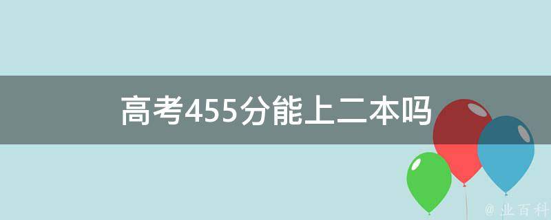 高考455分能上二本,但具体录取情况需要根据当年各个学校的录取分数线来确定。本科二批录取在提前批次和本一批次之后,在本科三批和专科批次之前。划定的控制分数线又叫本科线,本科线一般按略多于计划招生数来确定,其计算办法是包括第一批的余数在内从第一批控制分数线往下测,直到人数比第二批计划招生数有一定余量时,取这个分数为其控制分数线。
