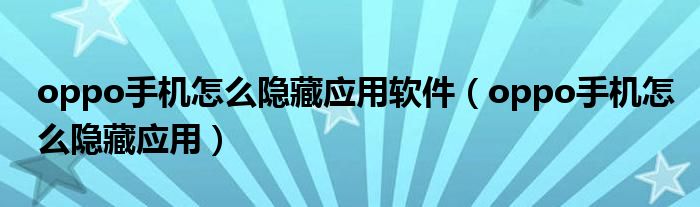 oppo手机怎么隐藏应用软件(oppo手机怎么隐藏应用)