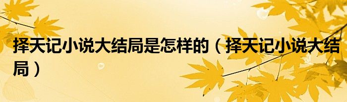 大家好,我是小科,我来为大家解答以上问题。择天记小说大结局是怎样的,择天记小说大结局很多人还不知道,现在让我们一起来看看吧!