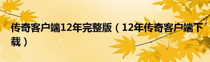 大家好,小联来为大家解答以上的问题。传奇客户端12年完整版,12年传奇客户端下载这个很多人还不知道,现在让我们一起来看看吧!