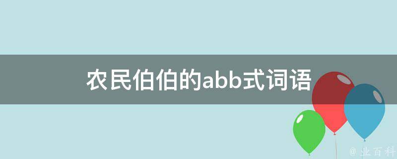 与农民伯伯有关的abb式词语有黑黝黝、汗津津、黑油油、慢悠悠、乐滋滋、苦巴巴、乐悠悠、喜滋滋、乐呵呵、瘦巴巴、湿漉漉、绿油油、慢吞吞、笑眯眯、黄澄澄、油亮亮、金灿灿、香喷喷、笑盈盈、软绵绵等。