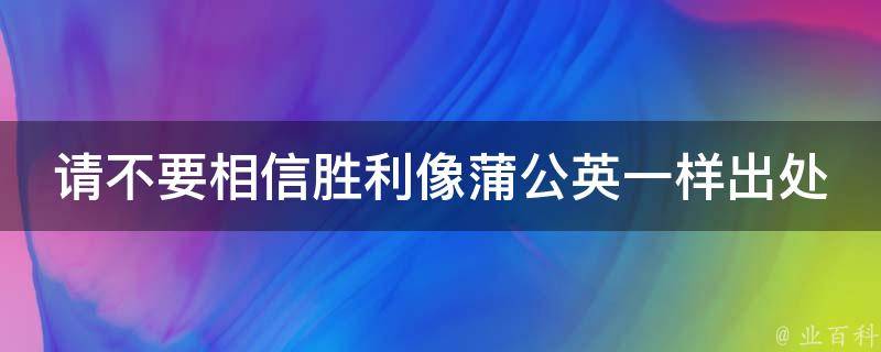 请不要相信胜利像蒲公英一样出自足球诗人贺炜。在卡塔尔世界杯赛中,当点球大战荷兰不敌阿根廷遗憾出局,贺炜解说时再现金句送别荷兰队。完整的句子是:请不要相信胜利就像山坡上的蒲公英一样唾手可得,但请相信,世上总有美好值得我们全力以赴,哪怕粉身碎骨。