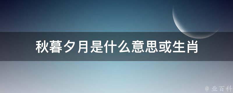 秋暮夕月指的是描绘出秋天傍晚时分月亮的景象。秋暮夕月指的是生肖蛇。巳蛇,十二生肖之一,地支的第六位。蛇灵敏灵活,巳时蛇多隐蔽在草丛中。逢巳年出生的人属蛇,北方大都说属小龙的,也有说属长虫儿的。人们之所以称蛇为小龙,是因为龙的形象最早脱胎于蛇,并非像有的人所说的将蛇称为小龙是攀龙附凤的意思。