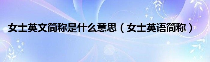 大家好,小联来为大家解答以上的问题。女士英文简称是什么意思,女士英语简称这个很多人还不知道,现在让我们一起来看看吧!