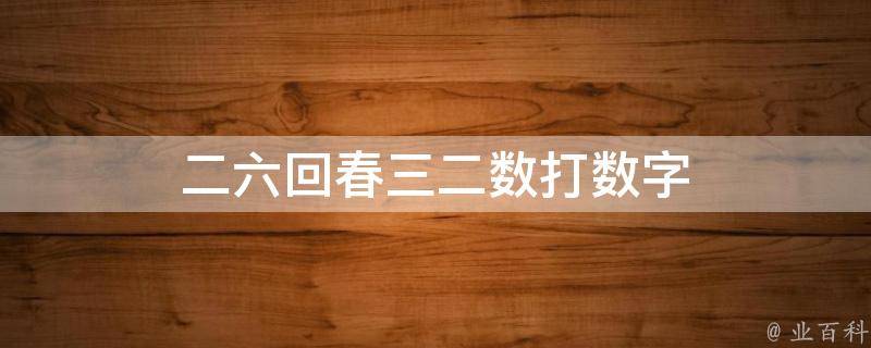 二六回春三二数打数字是39,可以从二六回春三二数的笔画入手去猜数字。二字2笔画、六字4笔画、回字6笔画、春字9笔画、三字3笔画、二字2笔画、数字13笔画,7个字一共是2+4+6+9+3+2+13=39笔。因此二六回春三二数打数字是39。