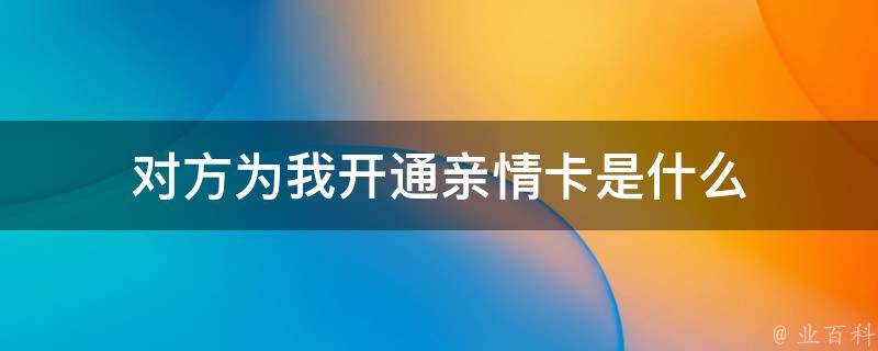 对方开通的亲情卡是一种代替支付的功能,许多第三方支付平台都设置有亲情卡的功能。用户可以选择与父母、子女或者伴侣之间互相绑定亲情卡,并将其中一方设置为支付方,当另一方消费时,支付方就会收到账单,并为其付款。