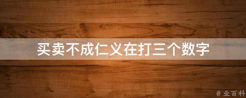 买卖不成仁义在指的是数字2、1、6。买卖不成仁义在这句话的重点是仁义在,仁代表数字2,因为仁字是由一个人字和一个二字组成的;义的数字谐音是1;在字代表数字6,因为它有6笔画。综上所述,买卖不成仁义在指的是数字2、1、6。