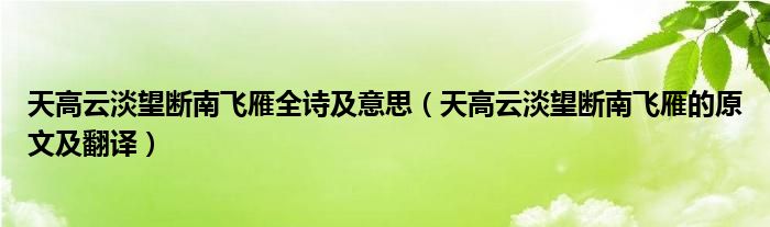 各位网友们好,我是编辑小夏,为大家解答天高云淡望断南飞雁全诗及意思,天高云淡望断南飞雁的原文及翻译问题。一起往下看看