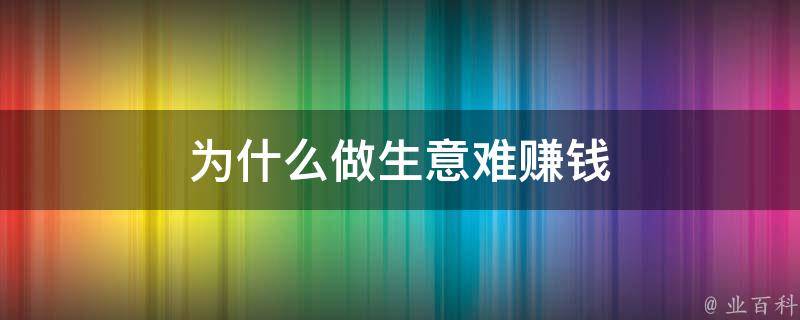 为什么做生意难赚钱