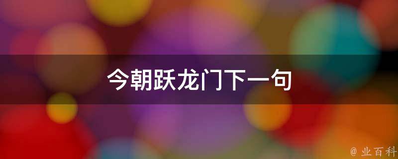 今朝跃龙门下一句是明日成栋梁。意思是在明天或者未来的日子里,这个人或事物将成为有用之才或者担任重要的职务,成为社会的主力军和国家栋梁。这句话表达了对跃龙门之后取得更大成就的期望和祝愿。
