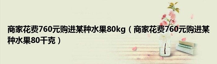 大家好,小联来为大家解答以上的问题。商家花费760元购进某种水果80kg,商家花费760元购进某种水果80千克这个很多人还不知道,现在让我们一起来看看吧!