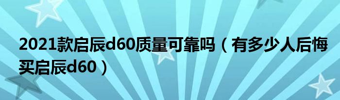 大家好,我是小科,我来为大家解答以上问题。2021款启辰d60质量可靠吗,有多少人后悔买启辰d60很多人还不知道,现在让我们一起来看看吧!