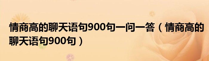 今天小饼为大家解答以下问题,关于情商高的聊天语句900句一问一答,情商高的聊天语句900句很多人还不知道,现在让我们一起来看看吧!