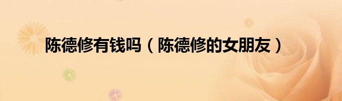 大家好,我是小科,我来为大家解答以上问题。陈德修有钱吗,陈德修的女朋友很多人还不知道,现在让我们一起来看看吧!