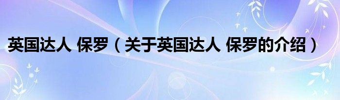 英国达人 保罗(关于英国达人 保罗的介绍)