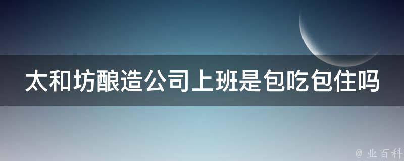 太和坊酿造公司上班是包吃包住。太和坊酿造公司有员工宿舍和员工食堂,为在职员工提供免费住宿和餐饮补贴。成都太和坊酿造有限公司,成立于2016年,位于四川省成都市,是一家以从事食品制造业为主的企业。