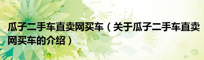 瓜子二手车直卖网买车(关于瓜子二手车直卖网买车的介绍)