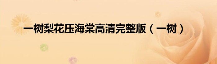 大家好,我是小科,我来为大家解答以上问题。一树梨花压海棠高清完整版,一树很多人还不知道,现在让我们一起来看看吧!
