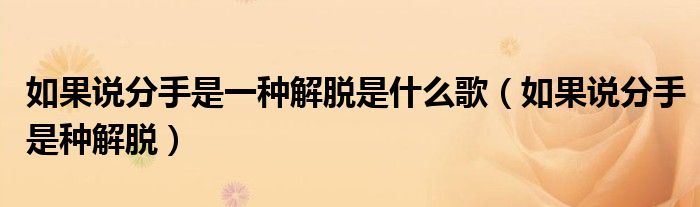大家好,我是小科,我来为大家解答以上问题。如果说分手是一种解脱是什么歌,如果说分手是种解脱很多人还不知道,现在让我们一起来看看吧!