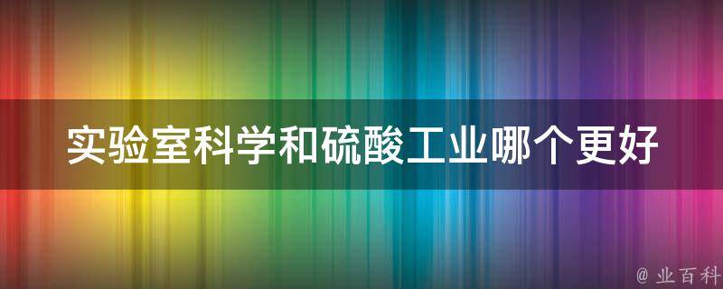 实验室科学和硫酸工业各有其优点,具体取决于个人的兴趣、职业目标和生活环境等因素。如果对科学研究和技术创新更感兴趣,喜欢在实验室中进行深入的研究和探索,那么实验室科学可能更适合。如果对工业生产和技术应用更感兴趣,喜欢在生产线上进行实际操作和维护,那么硫酸工业可能更适合。